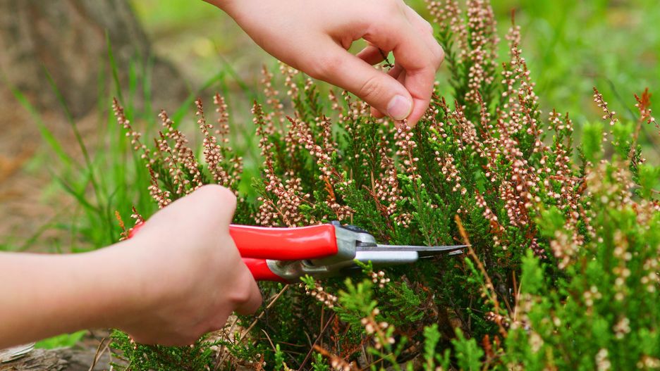 Wrzosy powinno się przycinać ostrym narzędziem, a do tego idealnie sprawdzi się sekator, który bez problemu poradzi sobie z suchymi gałęziami rośliny. Najlepiej jest uciąć wrzos ręcznie poniżej przekwitniętych kwiatostanów. Jeśli kępy wrzosów są bardzo gęste, to możesz użyć do tego nożyc do żywopłotu.
