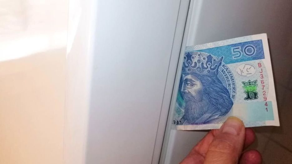 Test na szczelność drzwi lodówki z banknotem