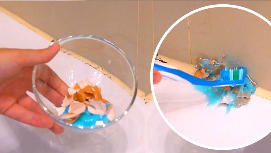 W miseczce połącz ze sobą dowolną pastę do zębów oraz skorupki jajek. Mieszaninę nałóż na fugi w miejscu, gdzie znajduje się pleśń. Następnie odczekaj ok. 10 minut. Po tym czasie zmyj całą mieszaninę. Bardziej uporczywe zabrudzenia zacznij szorować szczoteczką do zębów. Skorupki jajek mają właściwości wybielające, a także ścierne dlatego dobrze usuwają zaschnięty bród.