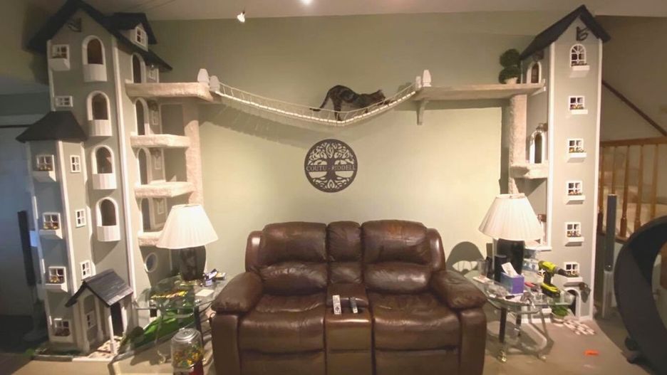 Rob Coutu, mieszkający w Windsorze w Connecticut, USA, jakiś czas temu postanowił dogodzić swoim kociakom i zbudować dla nich dwie połączone ze sobą wieże.