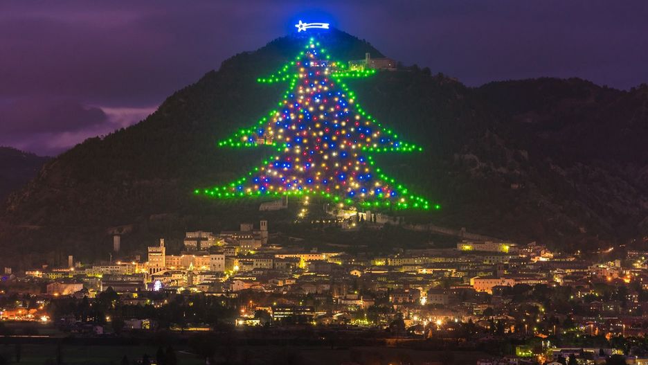Największa choinka na świecie zdobi wzgórze Monte Ingino, rozświetlając całe miasteczko. Instalacja ma 750 m wysokości i rozciąga się 130 tys. mkw. Na szczycie ozdoby znajduje się gwiazda betlejemska o wielkości 1 tys. mkw. Choinka składa się z 700 zestawów lamp choinkowych, które oświetlają całe miasto.