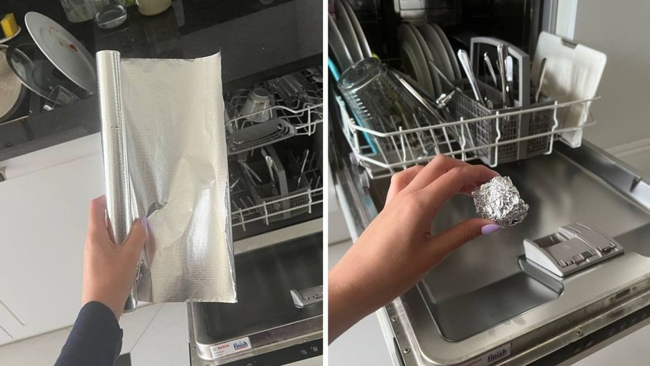 Następnym razem, gdy będziesz ładować zmywarkę, poświęć chwilę na oderwanie kawałka folii aluminiowej.