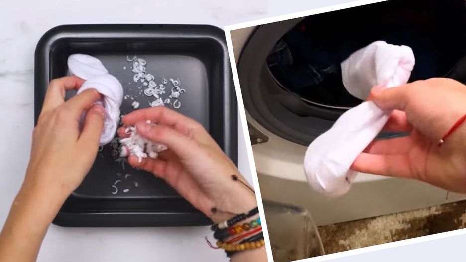 Wrzuć skarpetkę z mydłem do bębna pralki razem z praniem.