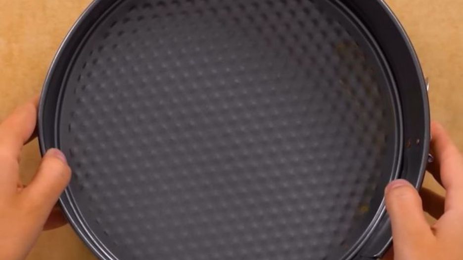 Następnie przyłóż jego wierzchołek do środka tortownicy.