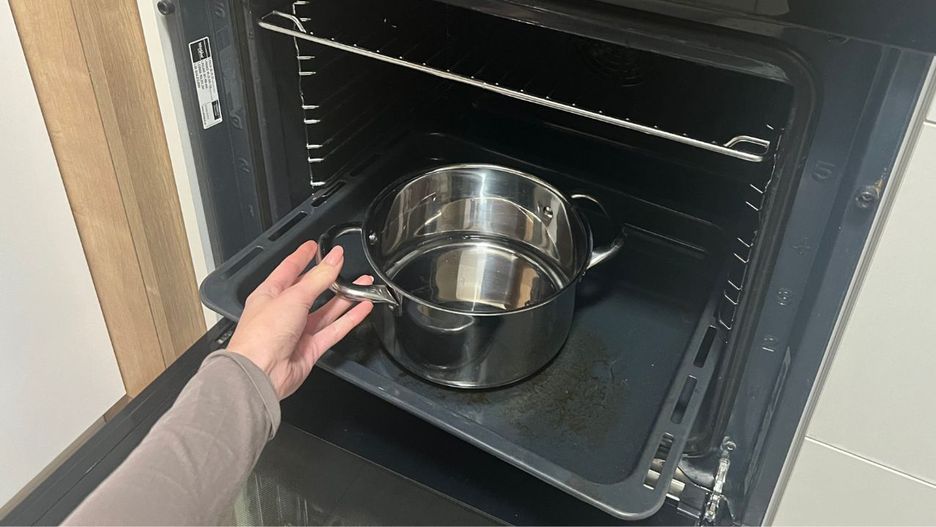 Najpierw do garnka (upewnij się, że jest odporny na wysokie temperatury) wlej szklankę gorącej wody. Później dodaj do niej pół szklanki octu oraz skórkę lub sok z cytryny (opcjonalnie). Cytryna zamaskuje nieprzyjemny zapach octu, a także pochłonie wszelką brzydką woń. Garnek wstaw do piekarnika (na środkową kratkę). Ustaw temperaturę na 250 stopni Celsjusza. Po 30 minutach wyłącz piekarnik i pozostaw do ostygnięcia. Szybko zauważysz, że para wodna wykonała słuszną pracę. Dzięki niej wszystkie, przyklejone do ścianek, resztki żywności zmiękły. Po ostygnięciu będziesz mógł bez trudu wymyć piekarnik wilgotną ściereczką. Bez szorowania.