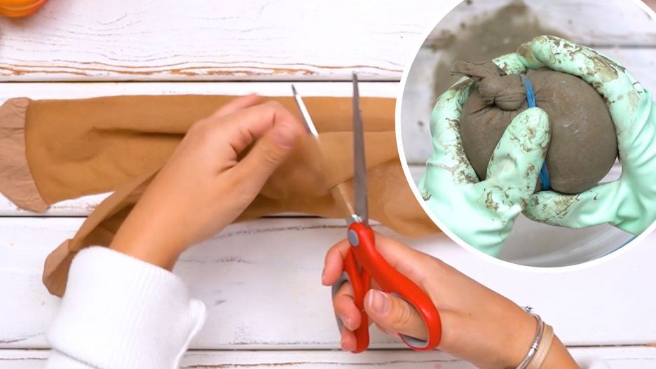 Wypełniła stare rajstopy cementem. Za kilka groszy zrobiła stylową ozdobę na jesień
