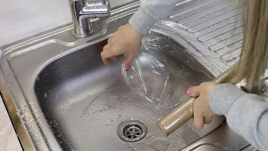 Wysmarowała zlew i pokryła go folią spożywczą. Jeszcze nigdy nie był tak czysty!