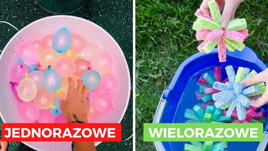 Czasami mamy gąbki, które nikt nie używał i nie będzie używać, ale jeżeli mamy używane , to wystarczy je wyparzyć albo wymoczyć w occie, zanim zrobimy z nich kule wodne do zabawy w ogrodzie :)