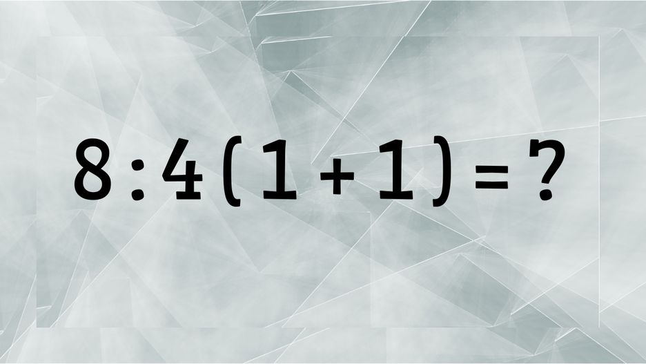 8 : 4 (1 + 1) - oto nasza łamigłówka, z którą musimy się uporać. Według zasad najpierw powinniśmy zacząć od nawiasów, a dopiero potem przejść do mnożenia i dzielenia, natomiast na sam koniec pozostawić sobie dodawanie i odejmowanie. Czy teraz już wiesz, jak ugryźć tę zagadkę matematyczną?