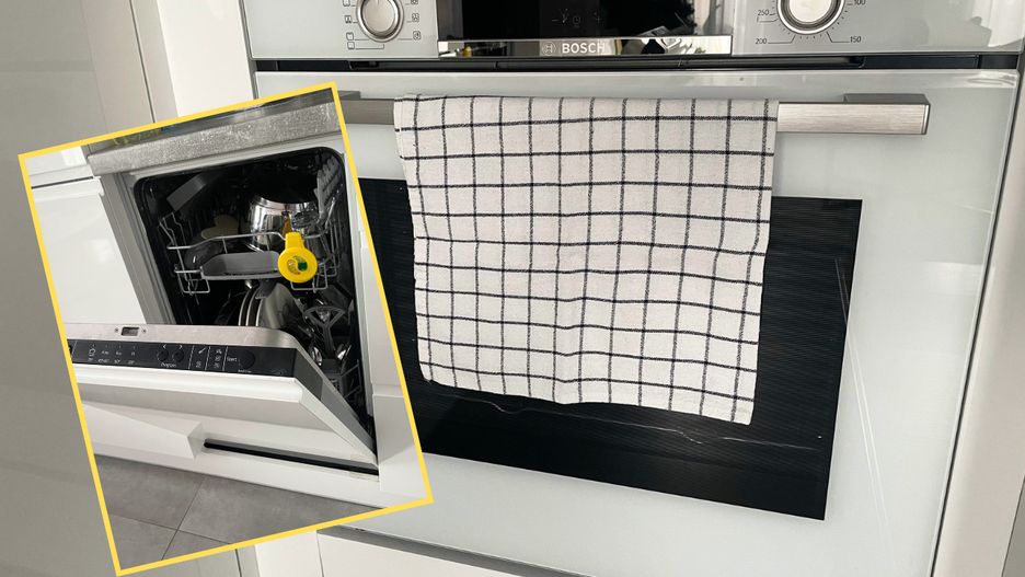 Zamiast na rączce piekarnika, powieś na zmywarce. Sprytny trik cioci Tosi