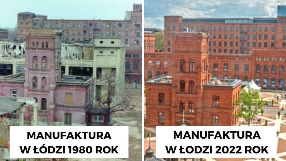 6. Manufaktura w Łodzi - 1980 vs. 2022 rok