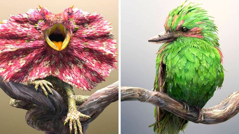 15 fantastycznych zwierząt utkanych z liści i barwnych płatków kwiatów. To zręczne fotomontaże